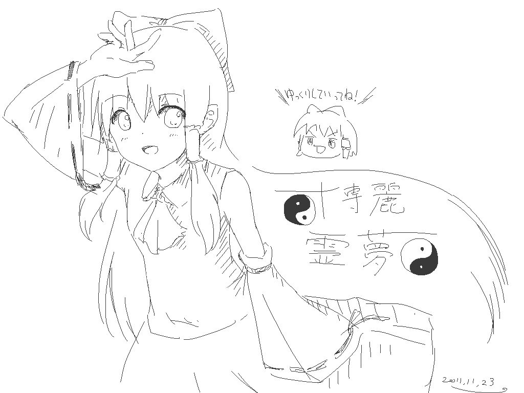 一枚目、霊夢でふざけて色々描いて、2枚目はちゃんと描きました。
