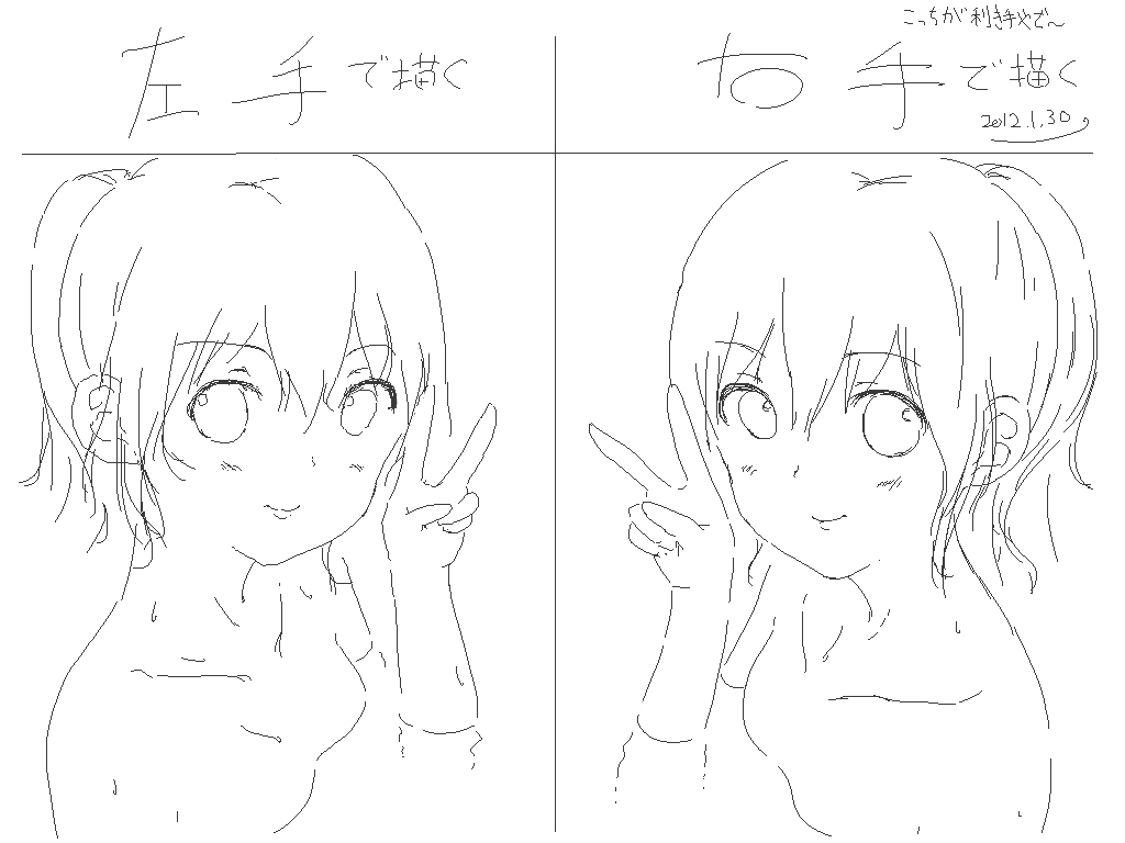 前に、利き手の逆の手で描く練習が良いっていうのを聞いた気がしたのでやってみました。